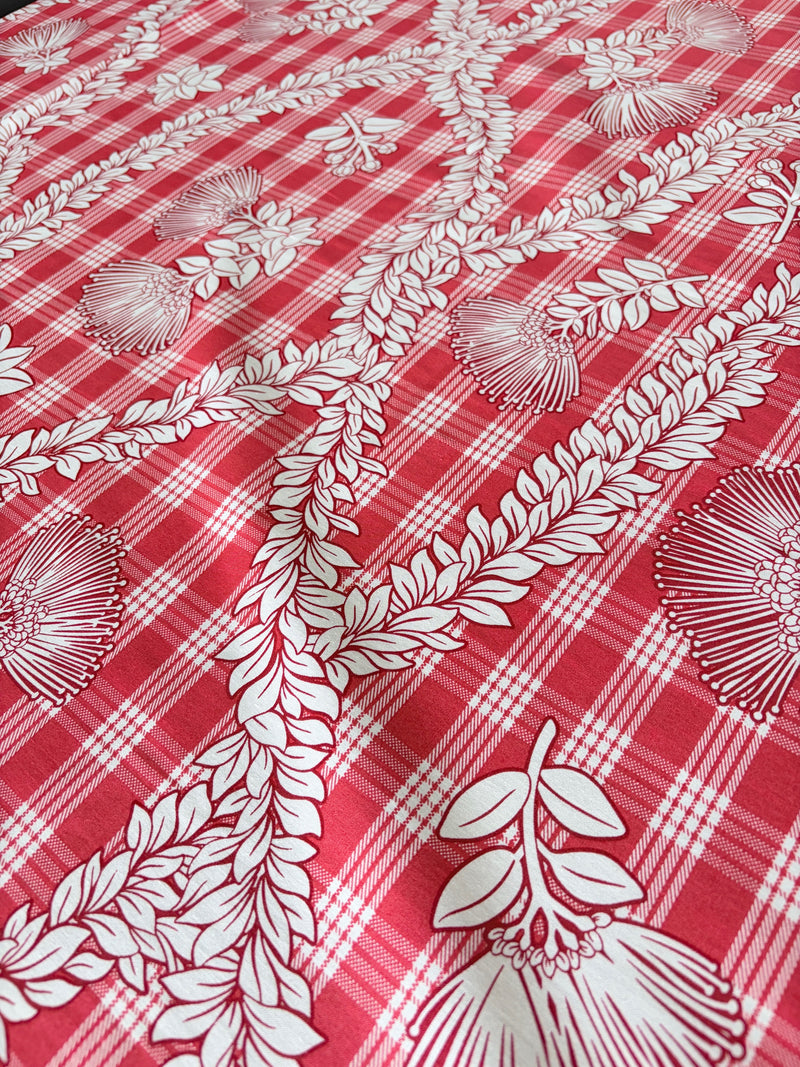 Ka Makani - Lehua Palaka Red Cotton Hula Pau Skirt / 3 Bands