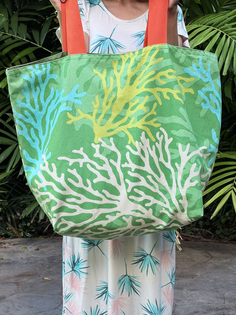 Ka Makani - XL Hawaiian Tote Bag - Ocean Coral Green