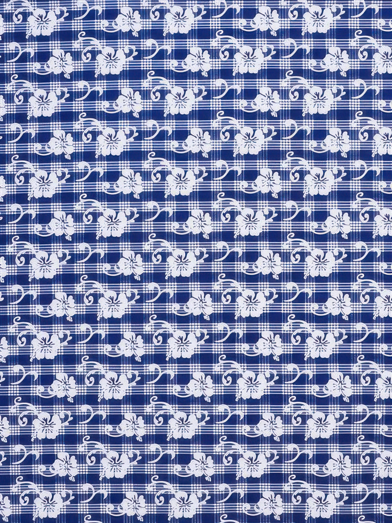 Ka Makani - Hibiscus Palaka Navy Poly Cotton Hula Pau Skirt / 3 Bands