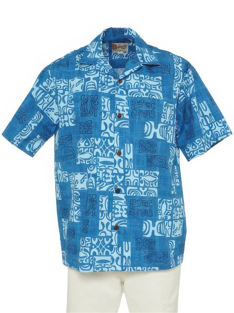 Hilo Hattie - Petro Blue Cotton Men's Hawaiian Shirt