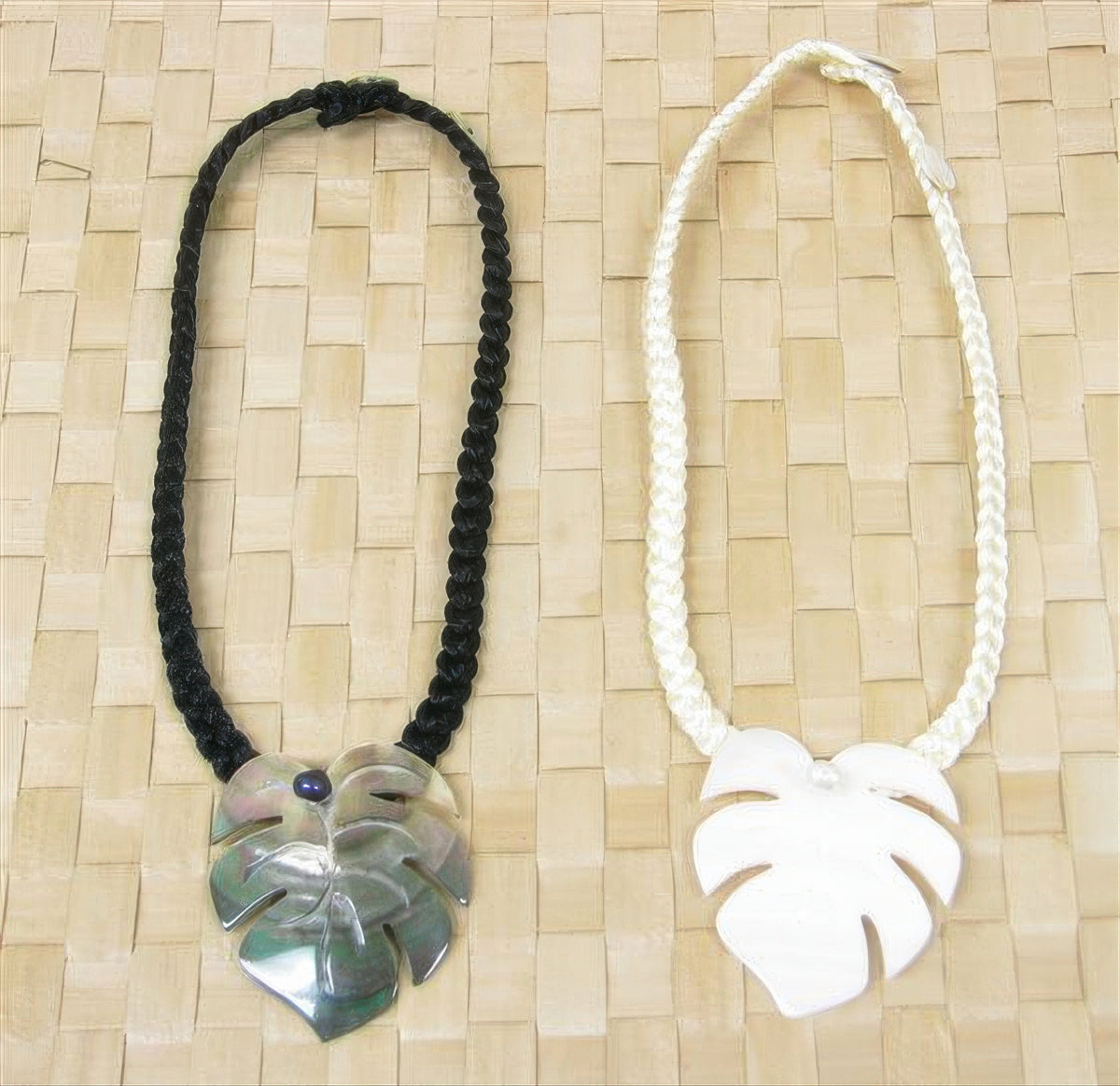 Ka Makani - Monstera Black Tahitian Shell Necklace with Fresh water pearl