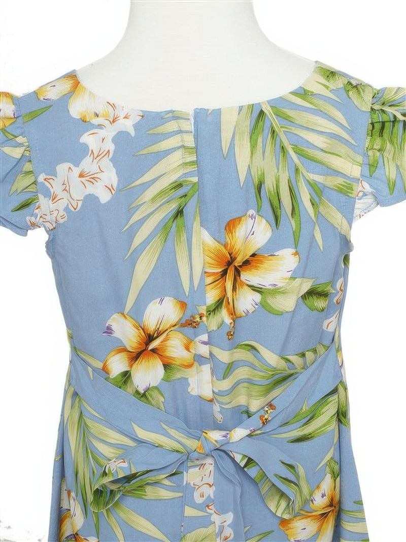 Napua Collection Honolulu - Hibiscus Farn Mint & Grey Rayon Racer Back O ring Maxi Dress