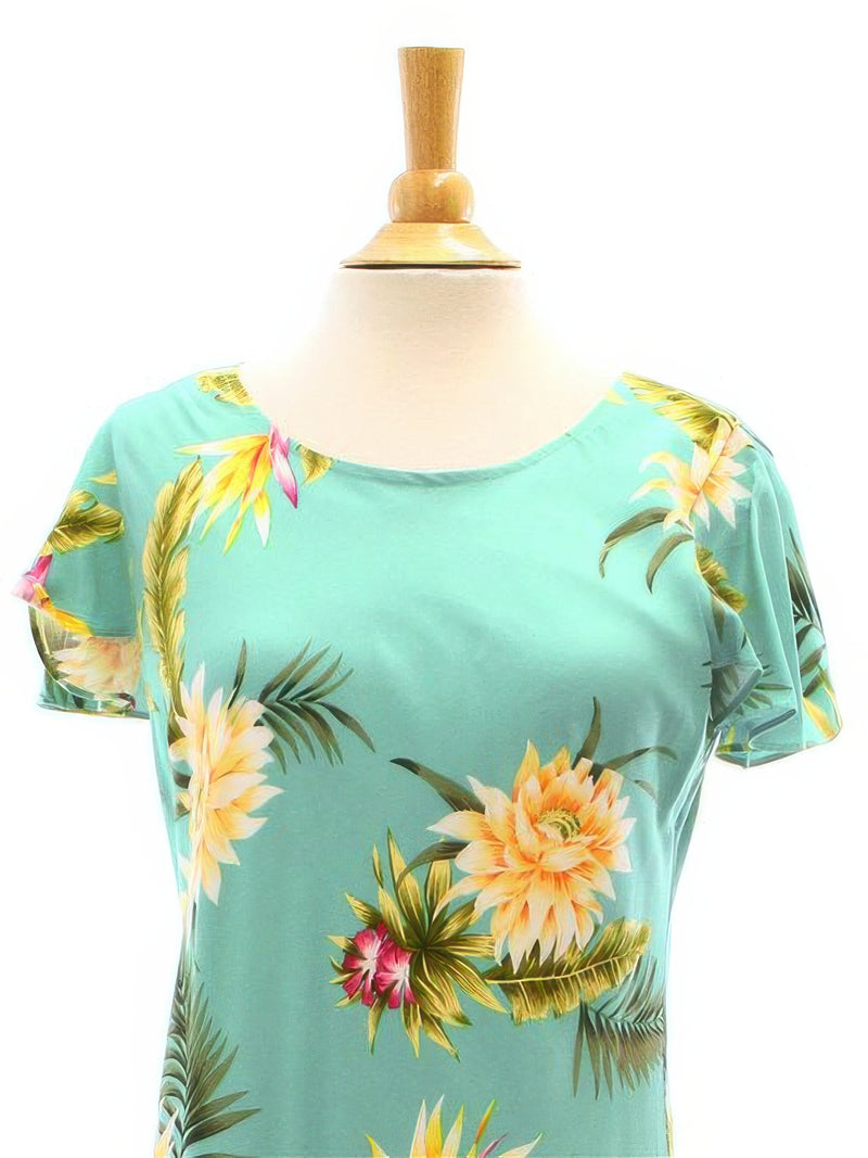 Two Palms - Ceres Green Rayon Hawaiian Long Dress
