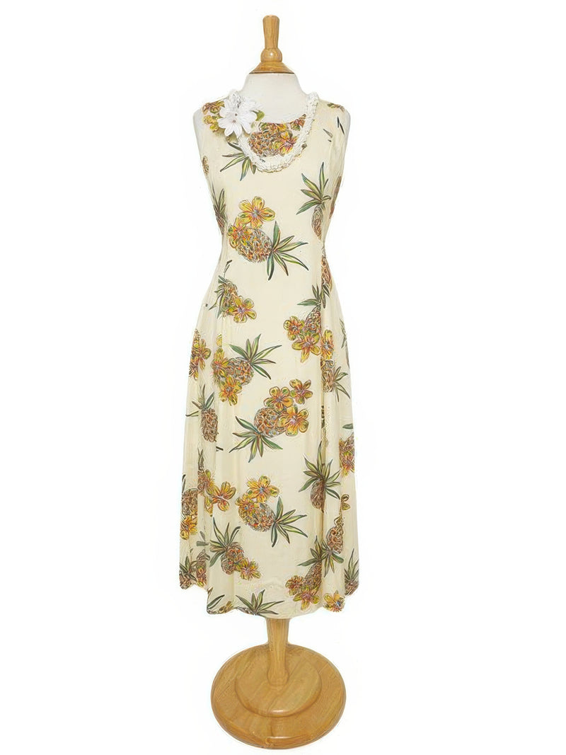 Two Palms - Hale Kahiki Cream Rayon Hawaiian Dress