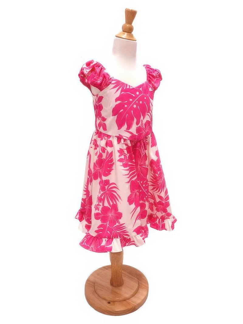 Royal Hawaiian Creations - Hibiscus Panel Pink Poly Cotton Girls Hawaiian Sundress