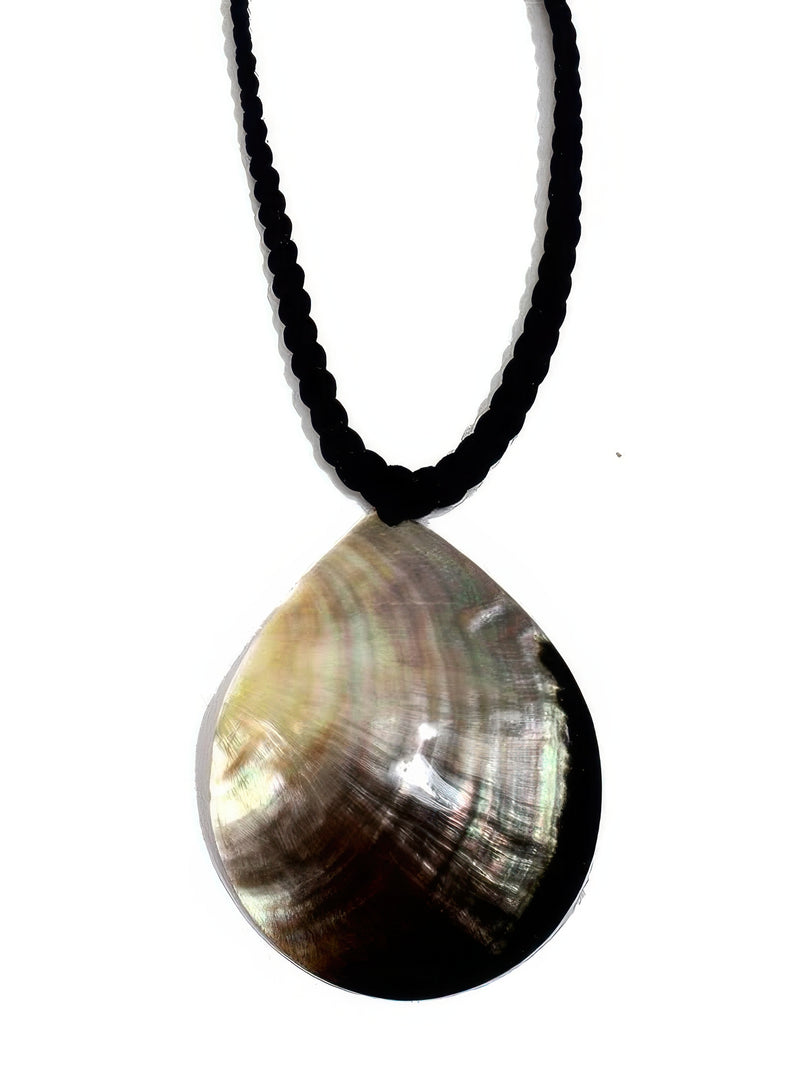 Ka Makani - Teardrop Mother of Pearl Blacklip Shell Necklace 3 x 2.5"