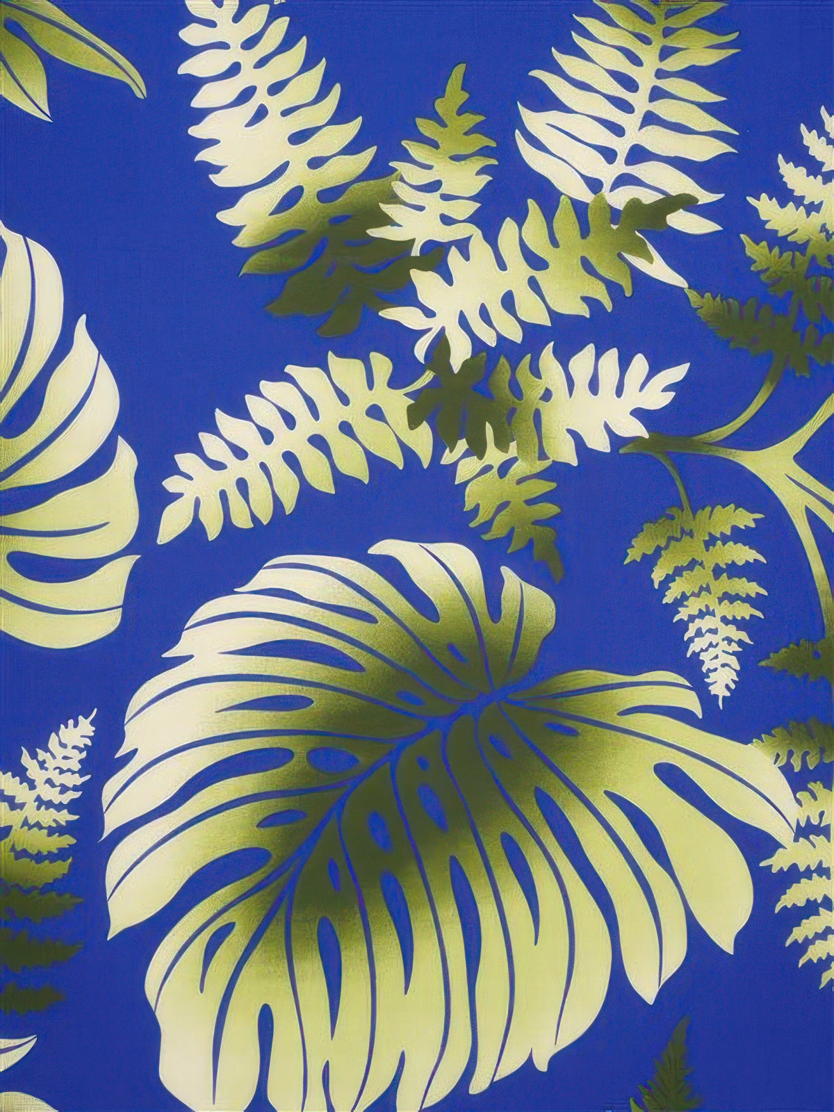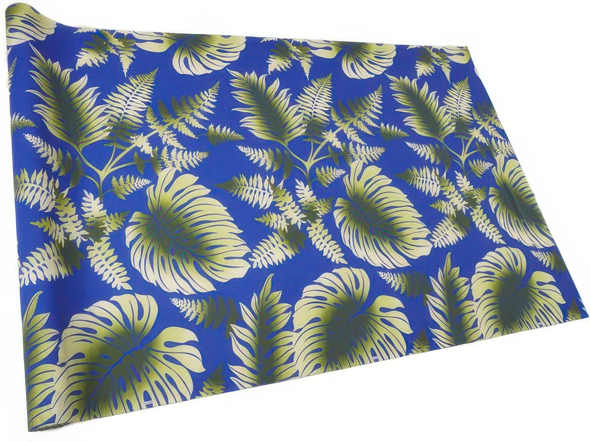 Introducing our Ka Makani Fern Blue Poly Cotton Hawaiian fabric. Made from a polyester and cotton blend, this Hawaiian Fabric is perfect for making Pau Skirt and Dress. This fabric is machine washable. All fabrics ship directly from Hawaii.