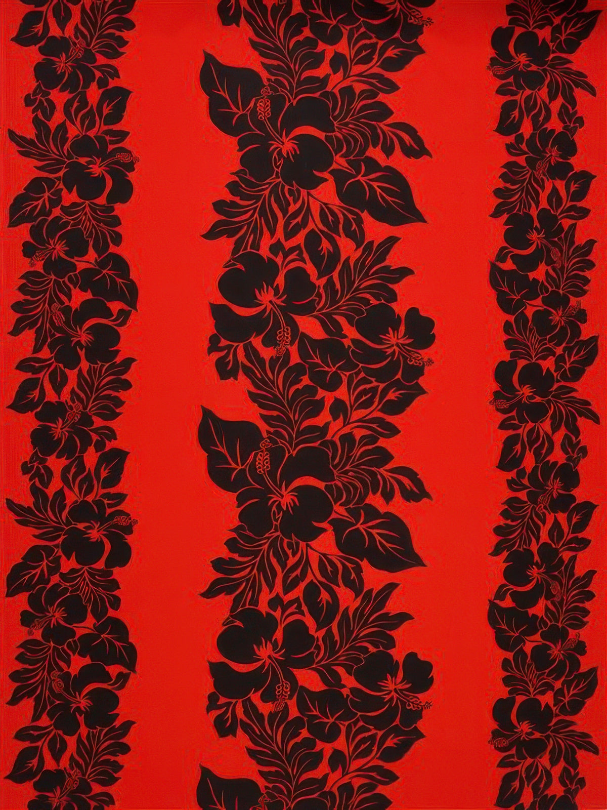 Ka Makani - Hibiscus Black & Red Poly Cotton Hawaiian Fabric ETU-436