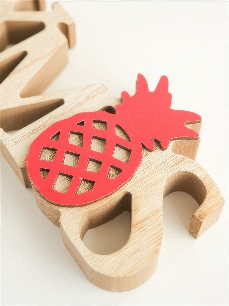 Ka Makani - Xmas with Red Pineapple Hawaiian Tabletop Wooden Block Sign