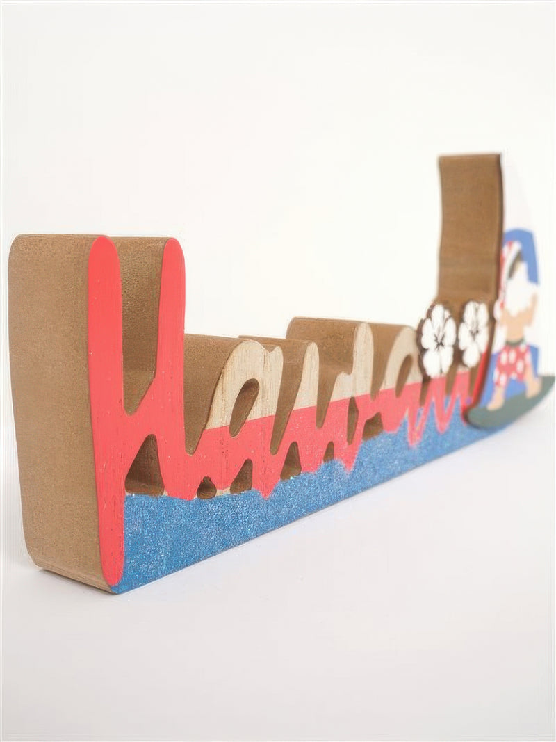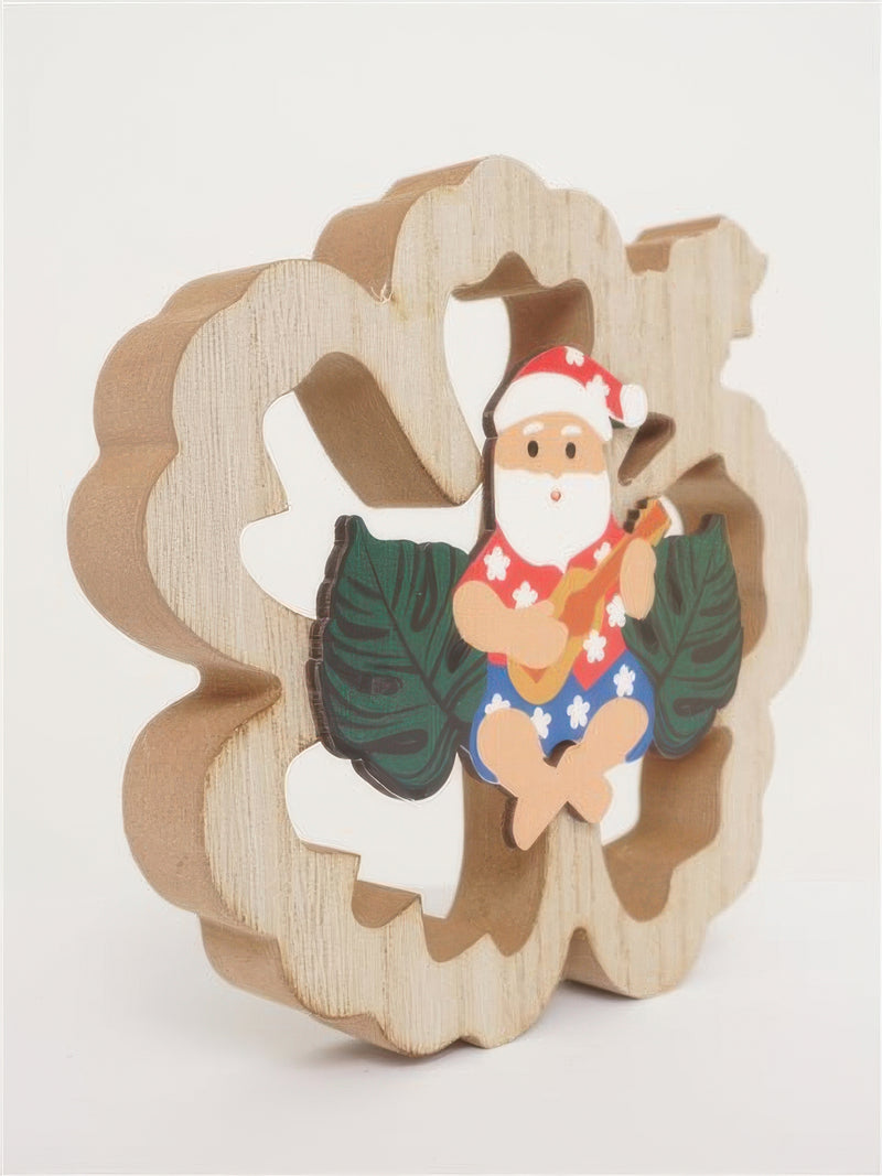 Ka Makani - Santa with Leaf Hawaiian Tabletop Wooden Block Sign