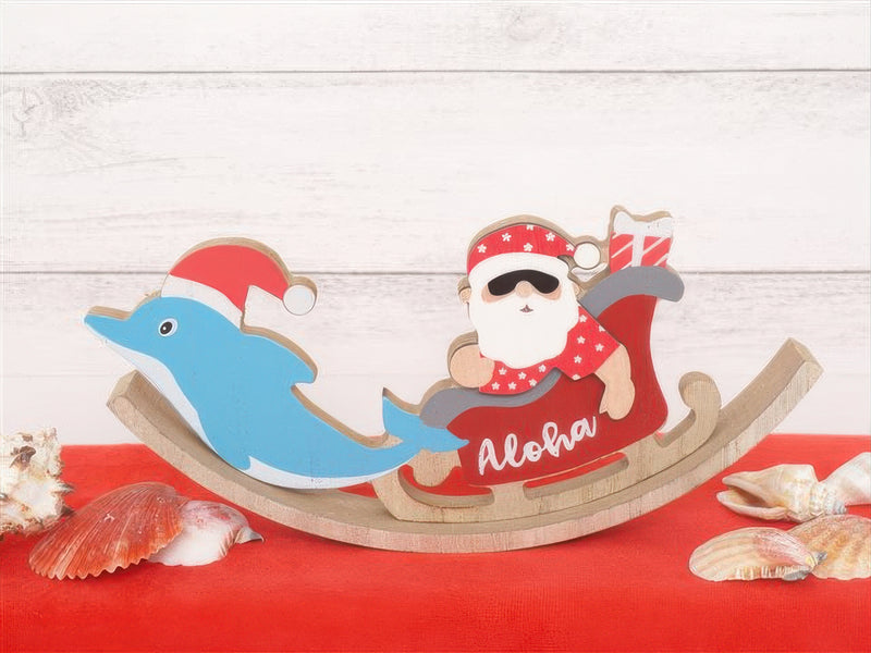 Ka Makani - Santa with Dolphin Hawaiian Tabletop Wooden Block Sign