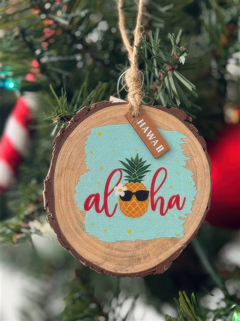 Ka Makani - Aloha Pineapple Hawaiian Christmas Wooden Ornament