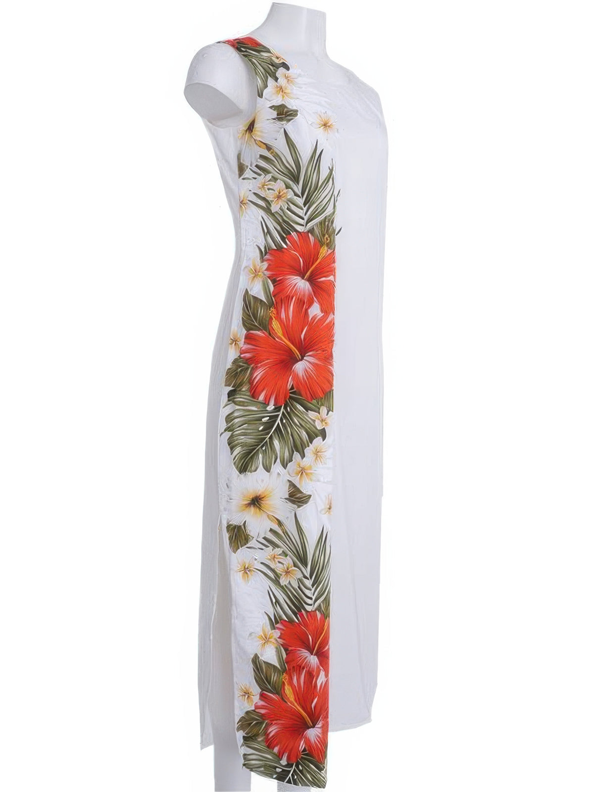 KY's - Red Aloalo Flower White Cotton Poplin Hawaiian Long Tank Dress
