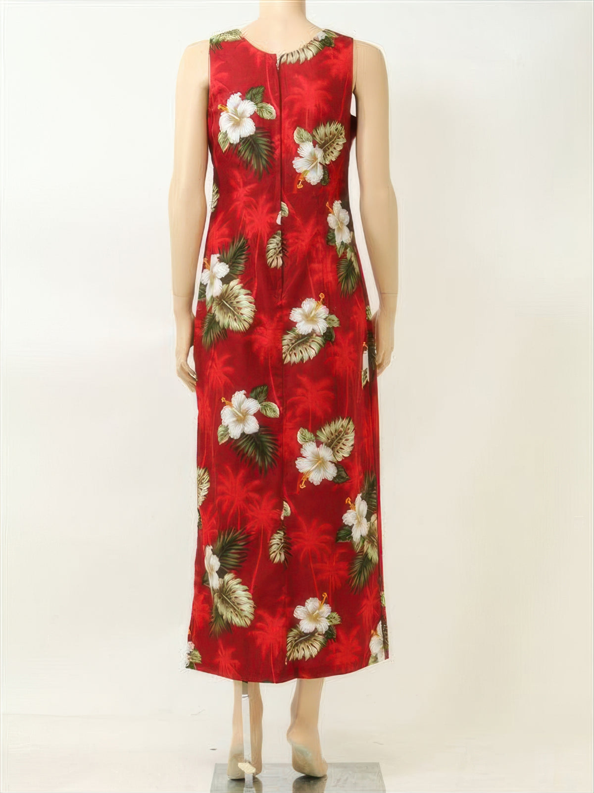 Crafted from 100% breathable cotton, this Hawaiian print long tank-style dress is perfect for warm, sunny days and special occasions alike. The back zipper allows for easy wear, while the 20-inch side slit offers freedom of movement with a touch of elegance.