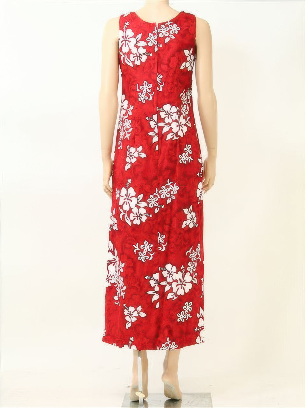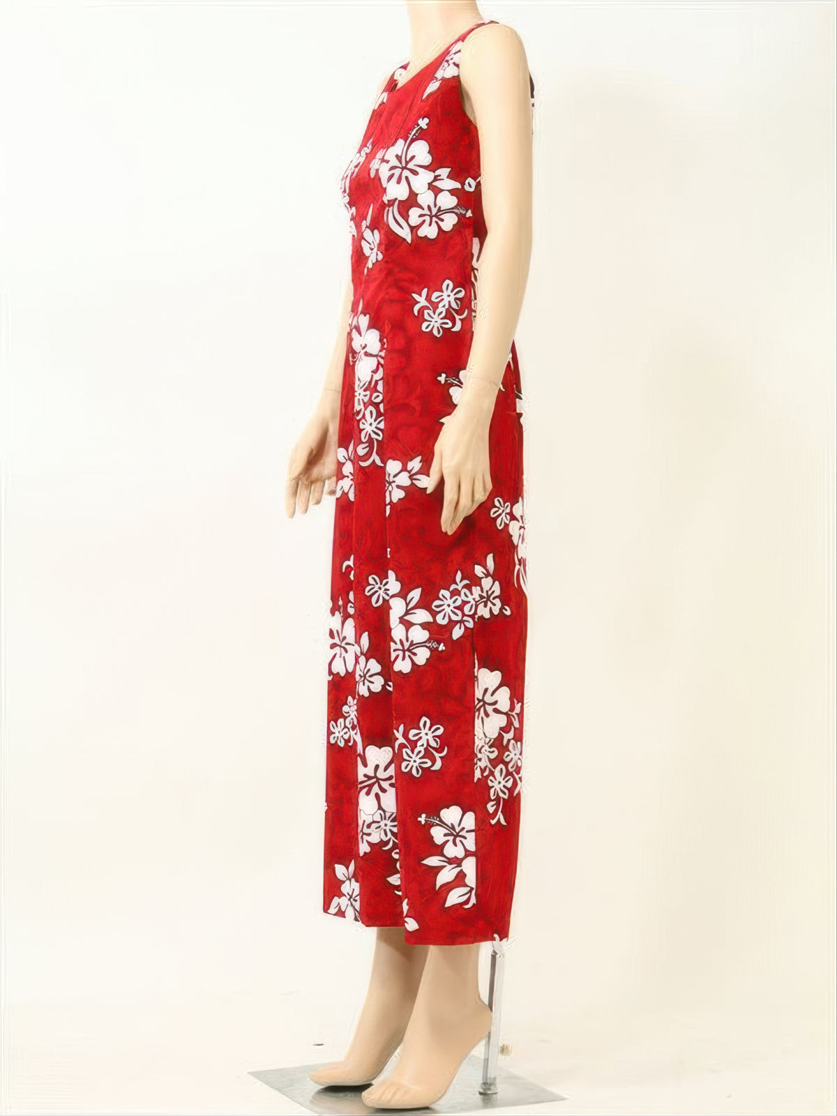 Pacific Legend - White Hibiscus Red Cotton Hawaiian Tank Long Dress