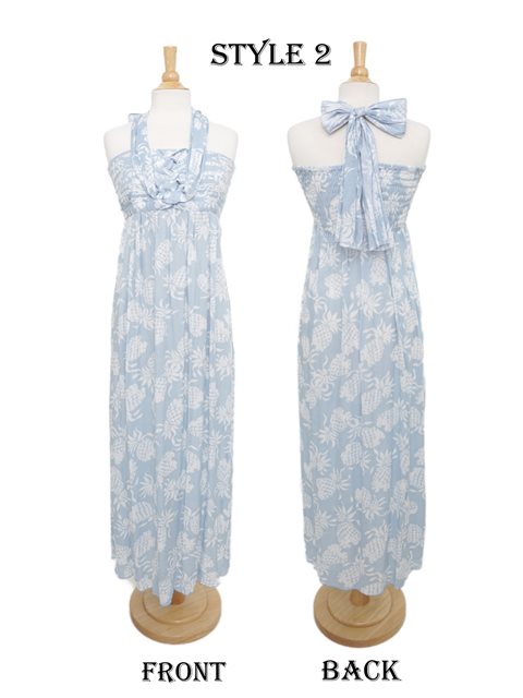 Sarong King - Pineapple Ballad Blue Wailea Long Dress