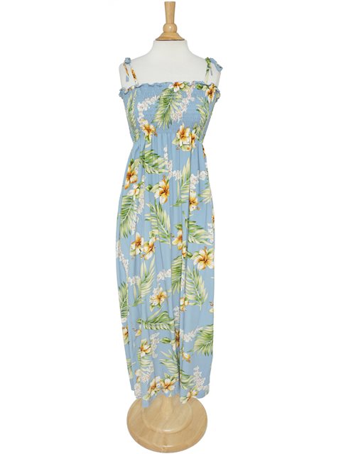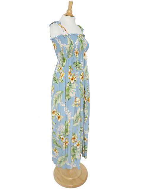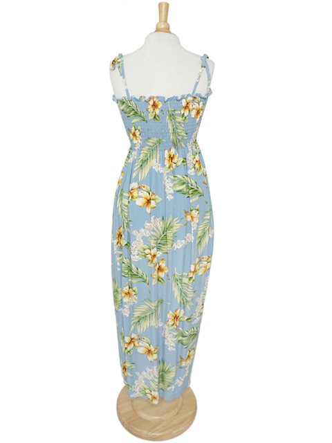 Two Palms - Tuberose Blue Rayon Hawaiian Summer Maxi Dress
