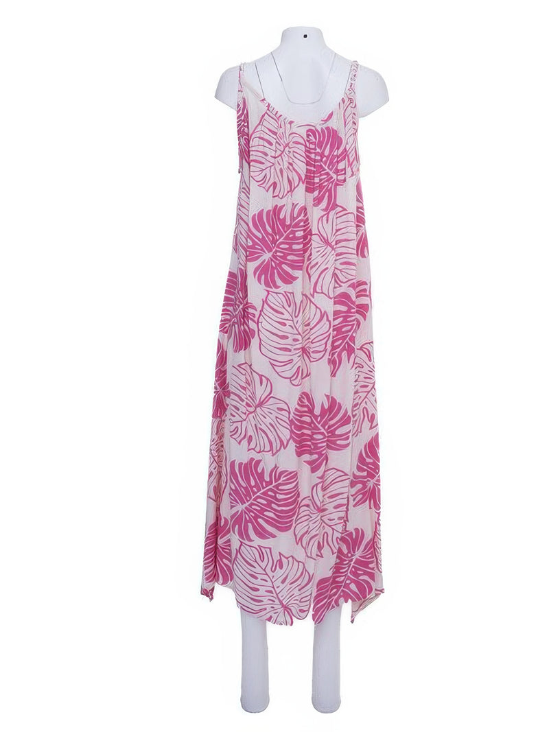 Napua Collection Honolulu - Reverse Monstera Pink Rayon Ankle Long Dress
