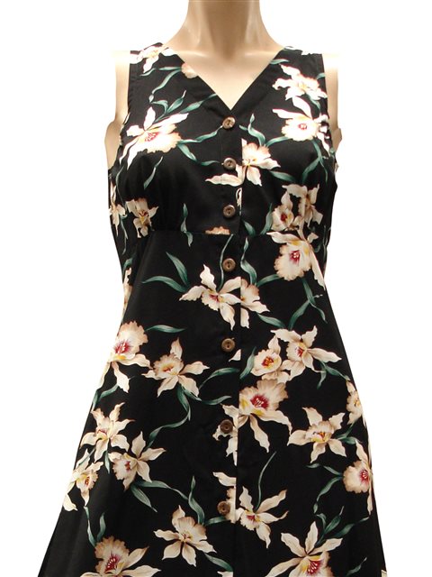 Paradise Found - Star Orchid Black Rayon Hawaiian Long Dress