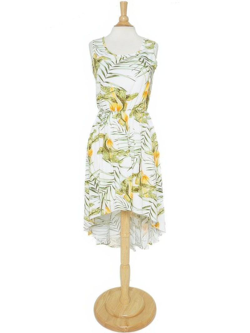 Two Palms - Napali White Rayon Hawaiian Hi-Low Midi Dress