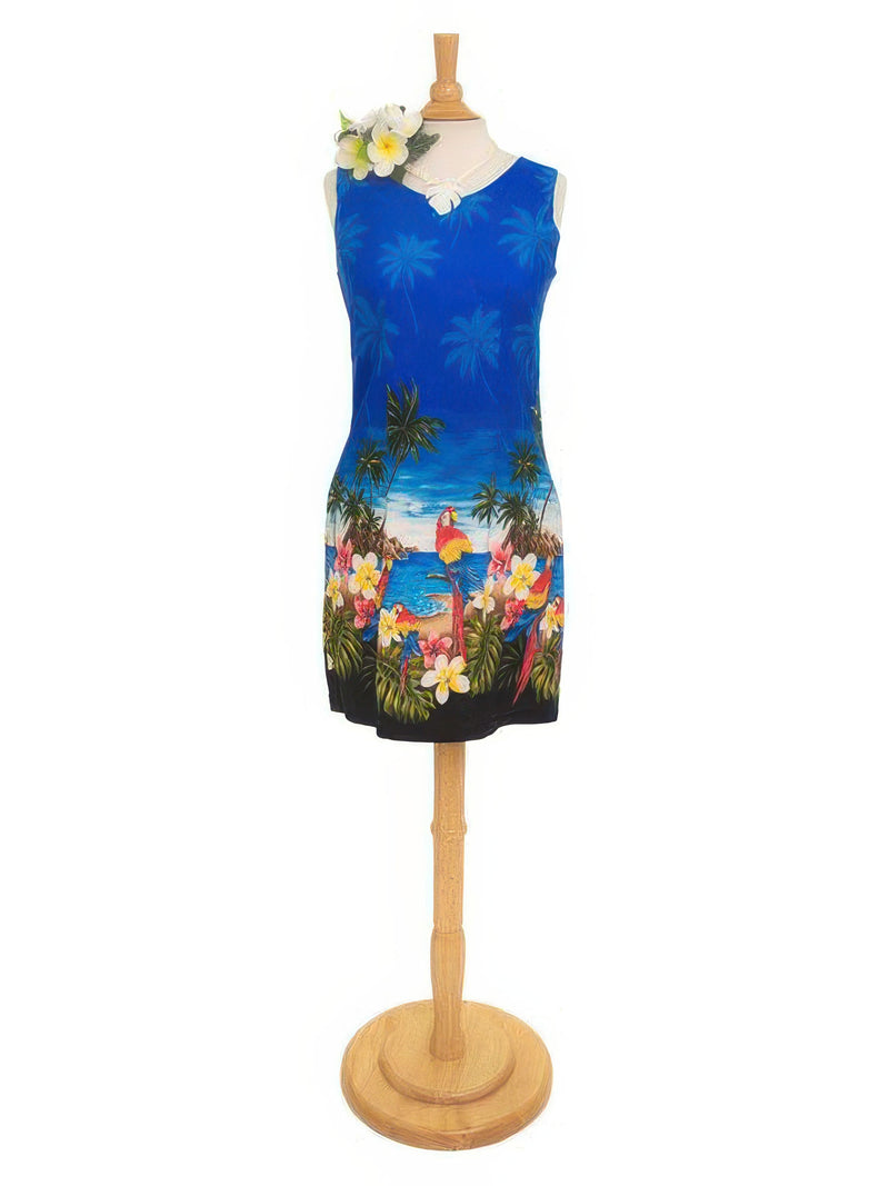 Pacific Legend - Parrot Blue Cotton Hawaiian Tank Short Dress