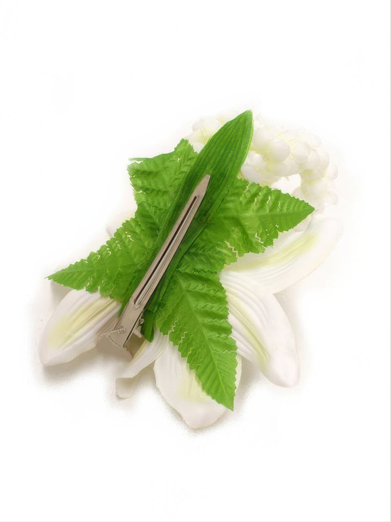 Ka Makani - Cream & Ivory Lily with Pikake Hair Clip 7"x 6"