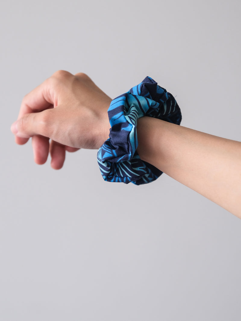 Ka Makani - Tribal Monstera Royal Blue Scrunchie