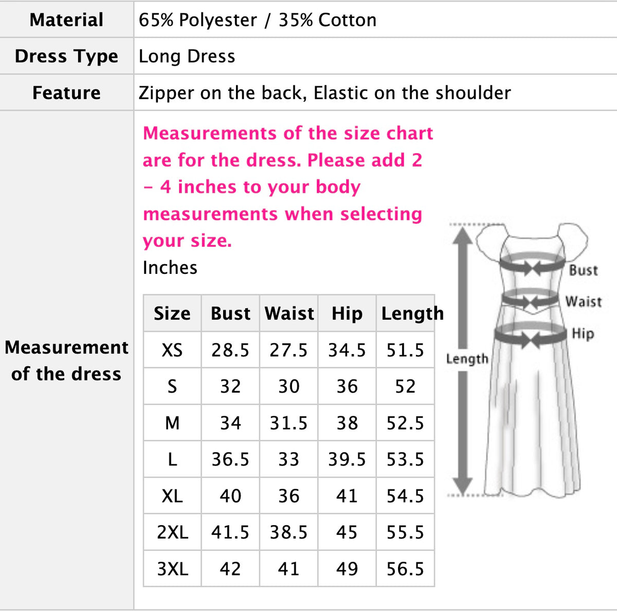 *The size shown is of the dress, and we recommend measuring your body and adding the following measurements to find the right size: