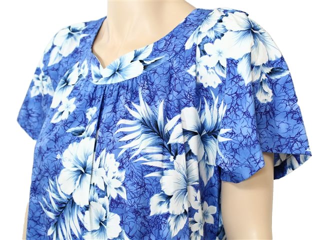 Two Palms - Crack Hibiscus Blue Cotton Hawaiian Midi Muumuu Dress