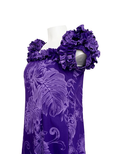 Two Palms - Monstera Ceres Purple Cotton Frill Puff Sleeve Long Dress