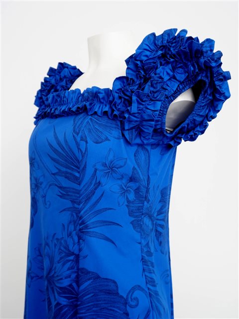 Two Palms - Monstera Ceres Royal Blue Cotton Frill Puff Sleeve Long Dress
