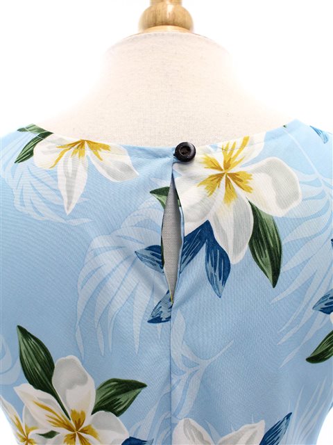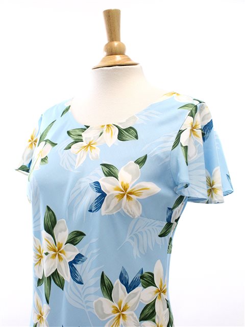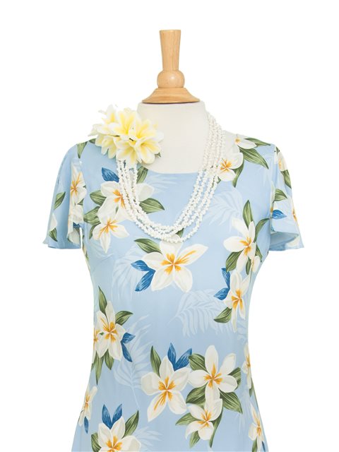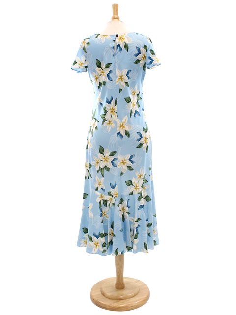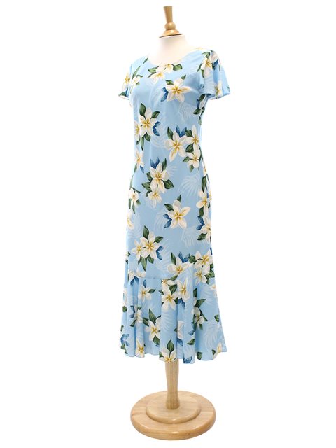 Two Palms - Plumeria Light Blue Rayon Hawaiian Long Dress