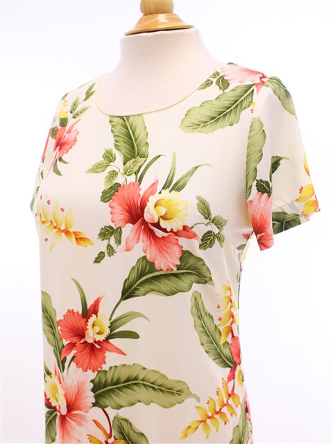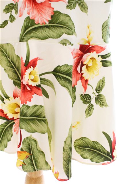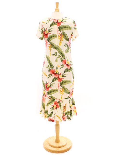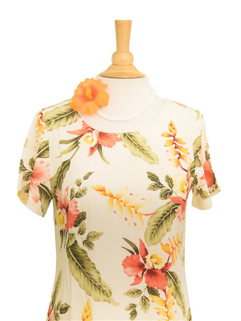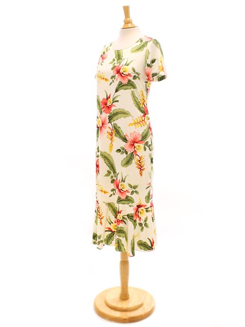 Luxurious 100% Rayon Hawaiian Midi Dress featuring an elegant flared hem design for distinctive style. The conservative cut offers versatility while maintaining authentic Hawaiian craftsmanship. Exceptionally soft fabric ensures all-day comfort, perfect for casual outings. Locally made in Hawaii with attention to detail. Coordinate with matching men's shirt for complementary styling options.