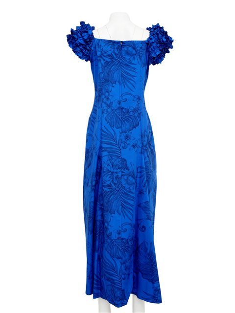 Two Palms - Monstera Ceres Royal Blue Cotton Frill Puff Sleeve Long Dress