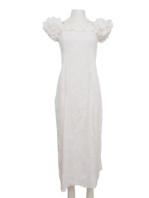 Two Palms - Hibiscus Panel White Cotton Frill Puff Sleeve Long Dress