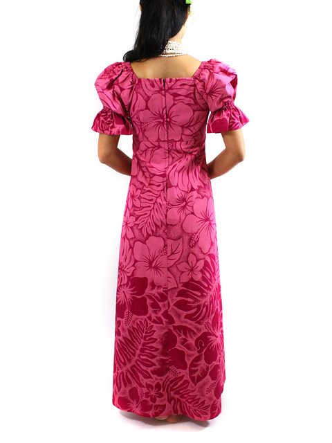 Ka Makani - Gradation Medley Pink Poly Cotton Hawaiian Long Muumuu Dress