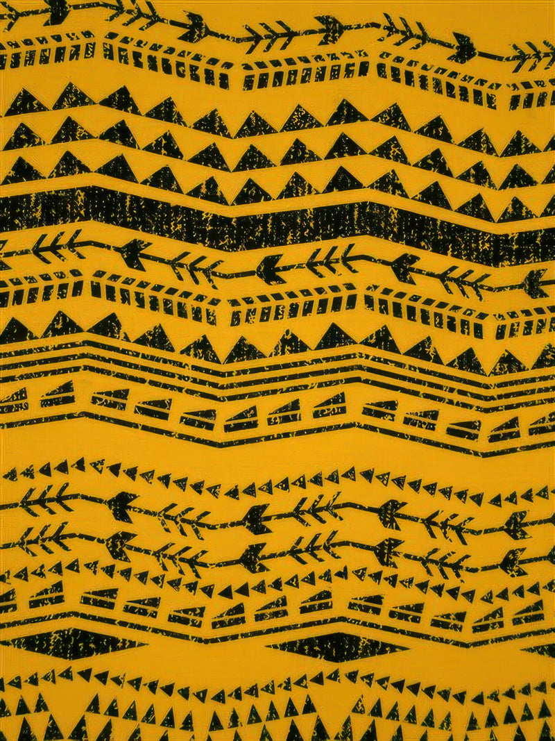 Ka Makani - Tapa Triangle Yellow Poly Cotton Hula Pau Skirt / 3 Bands