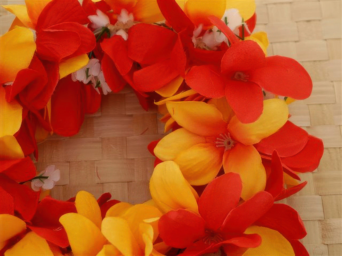 Ka Makani - Red & Yellow Plumeria Headband (Haku Lei)