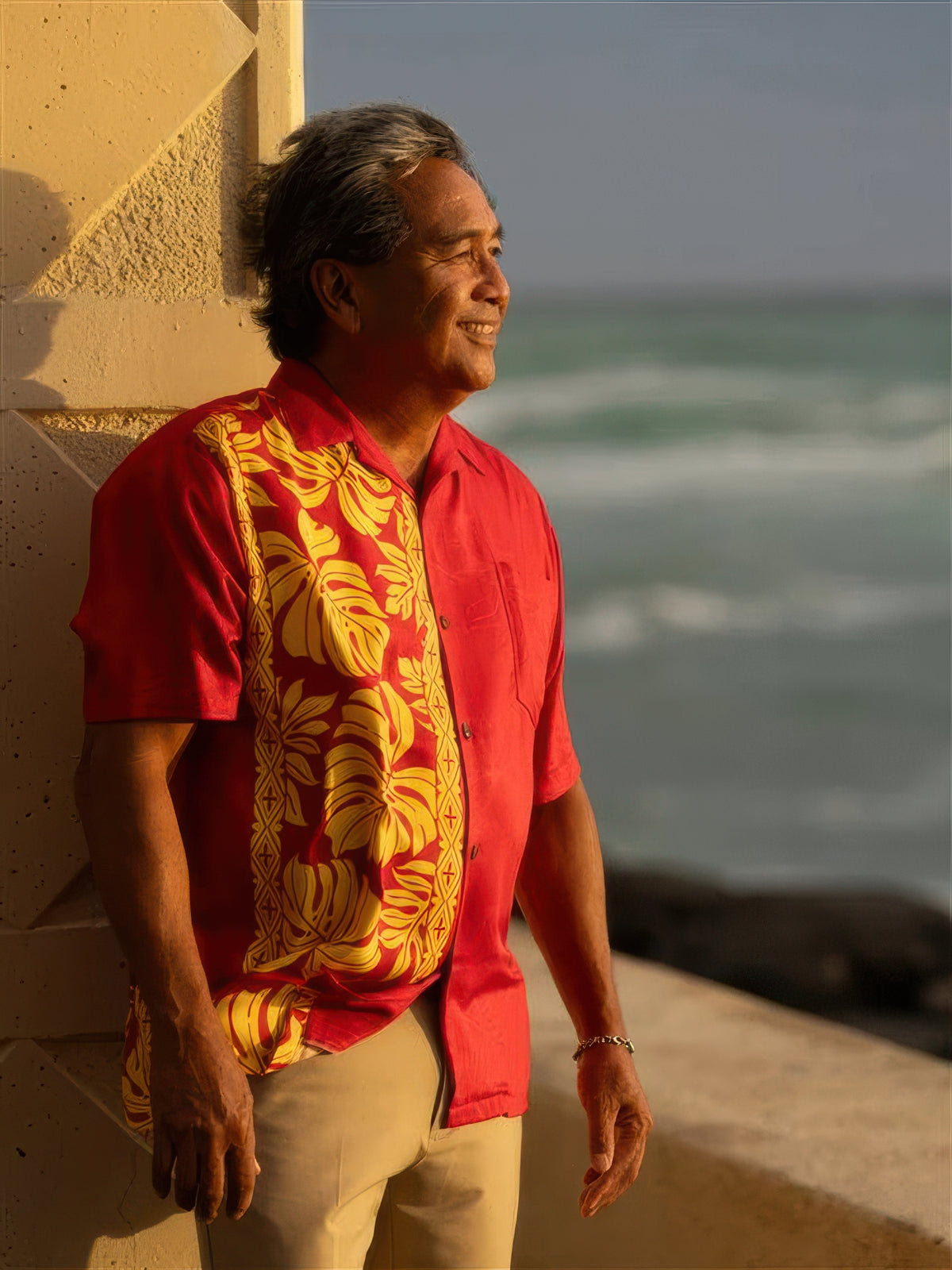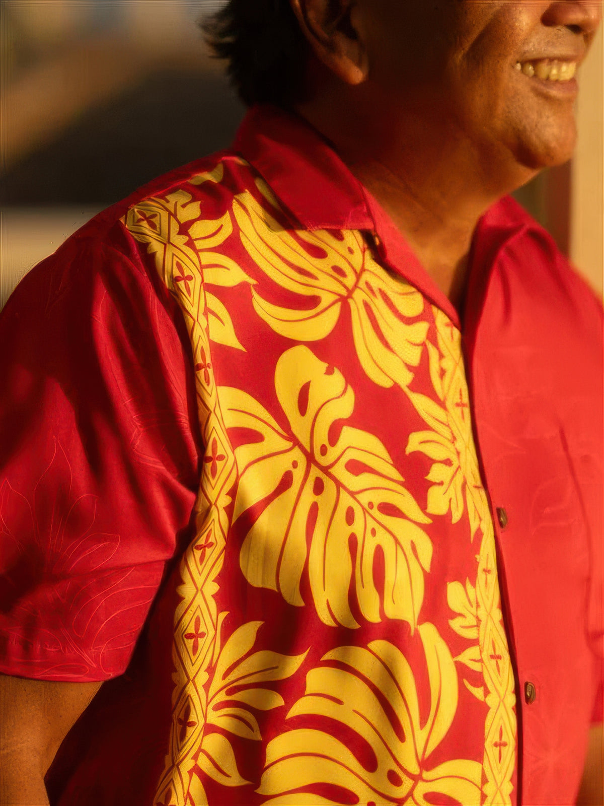 Hilo Hattie - Prince Kuhio Red & Gold Rayon Men's Hawaiian Shirt