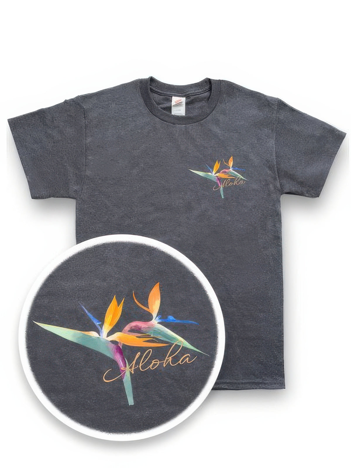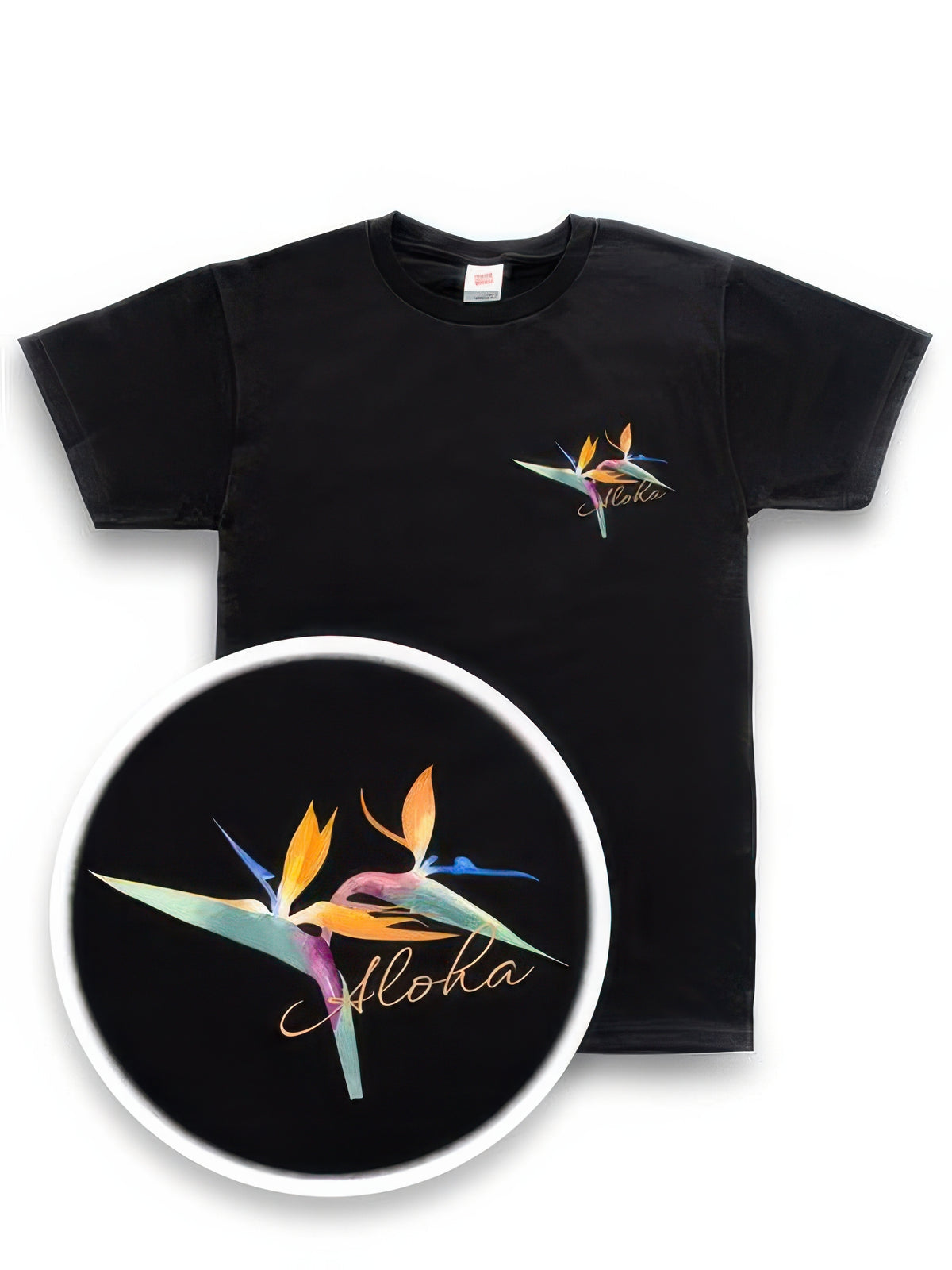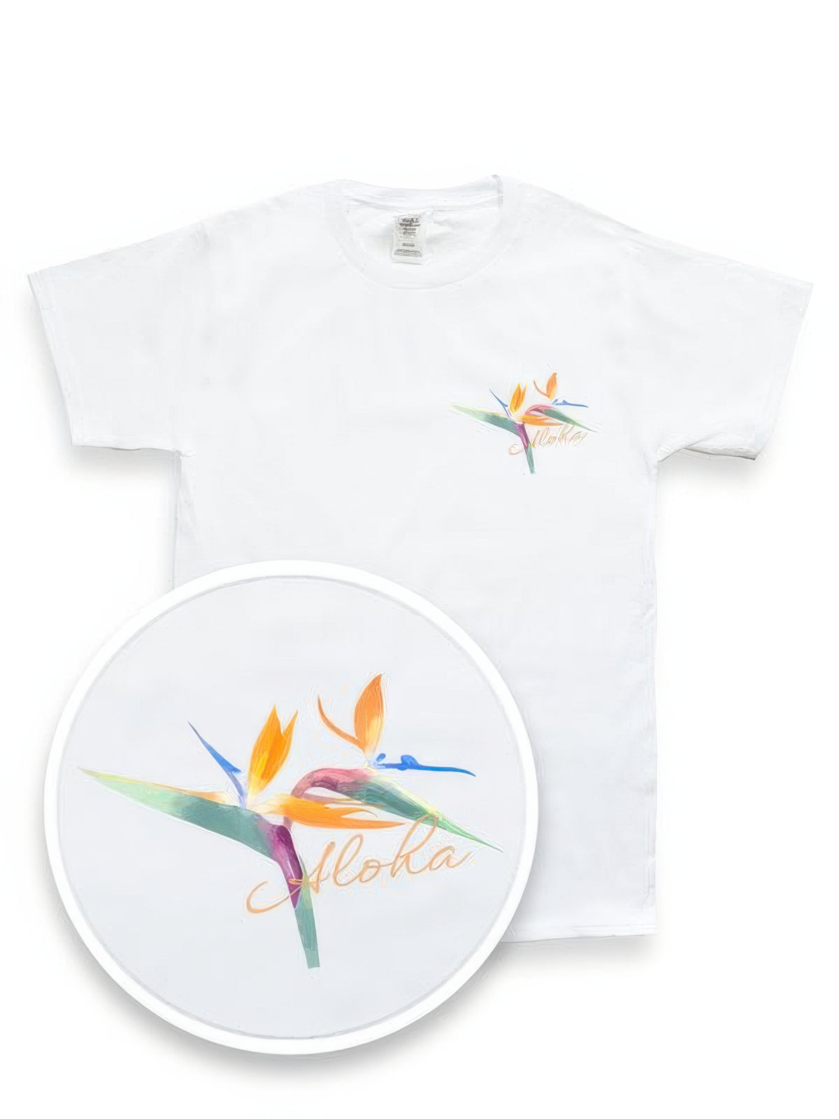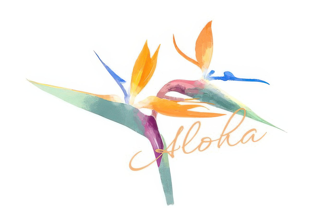 • Hand-drawn Bird of Paradise design with “Aloha” detail