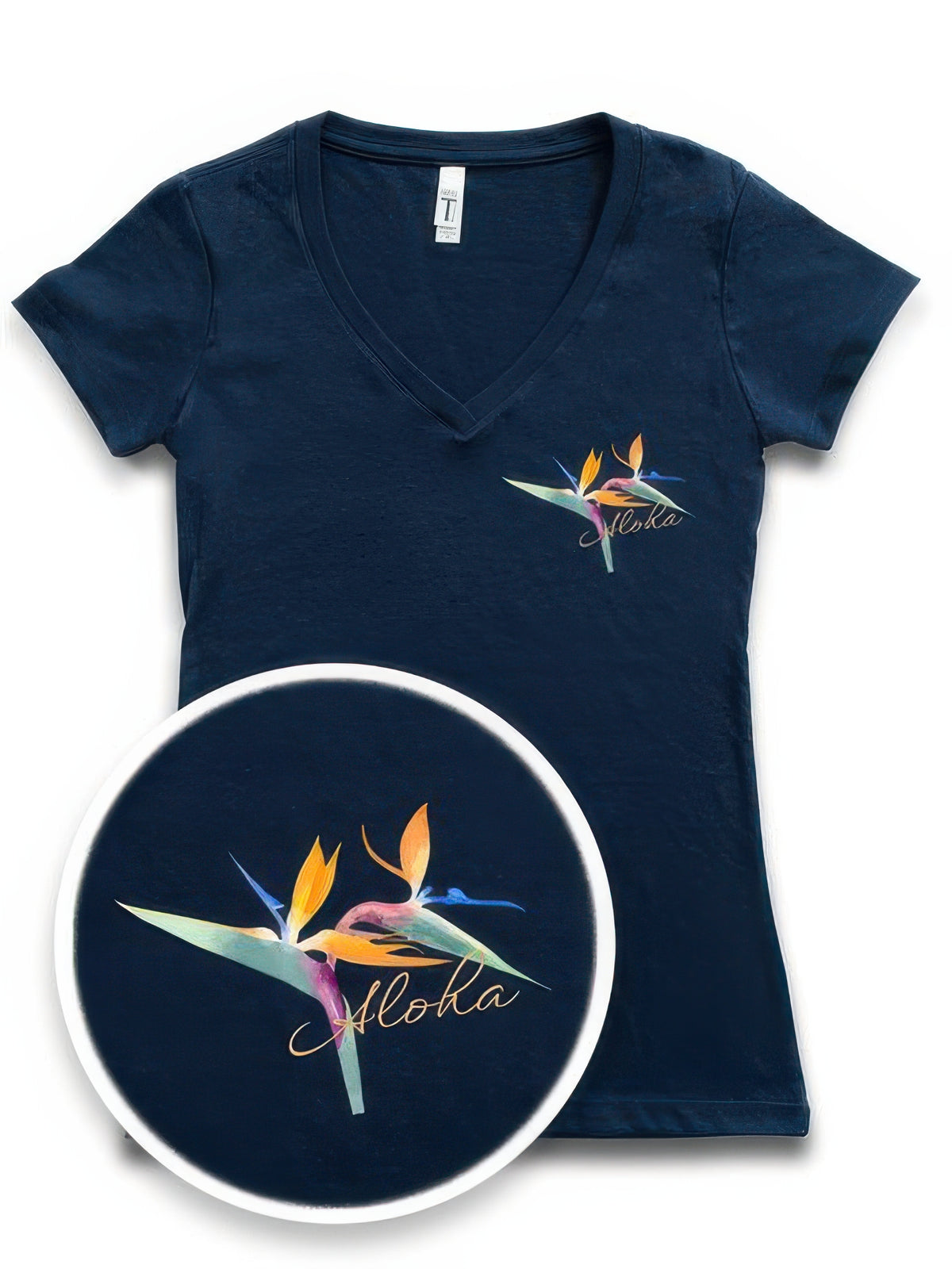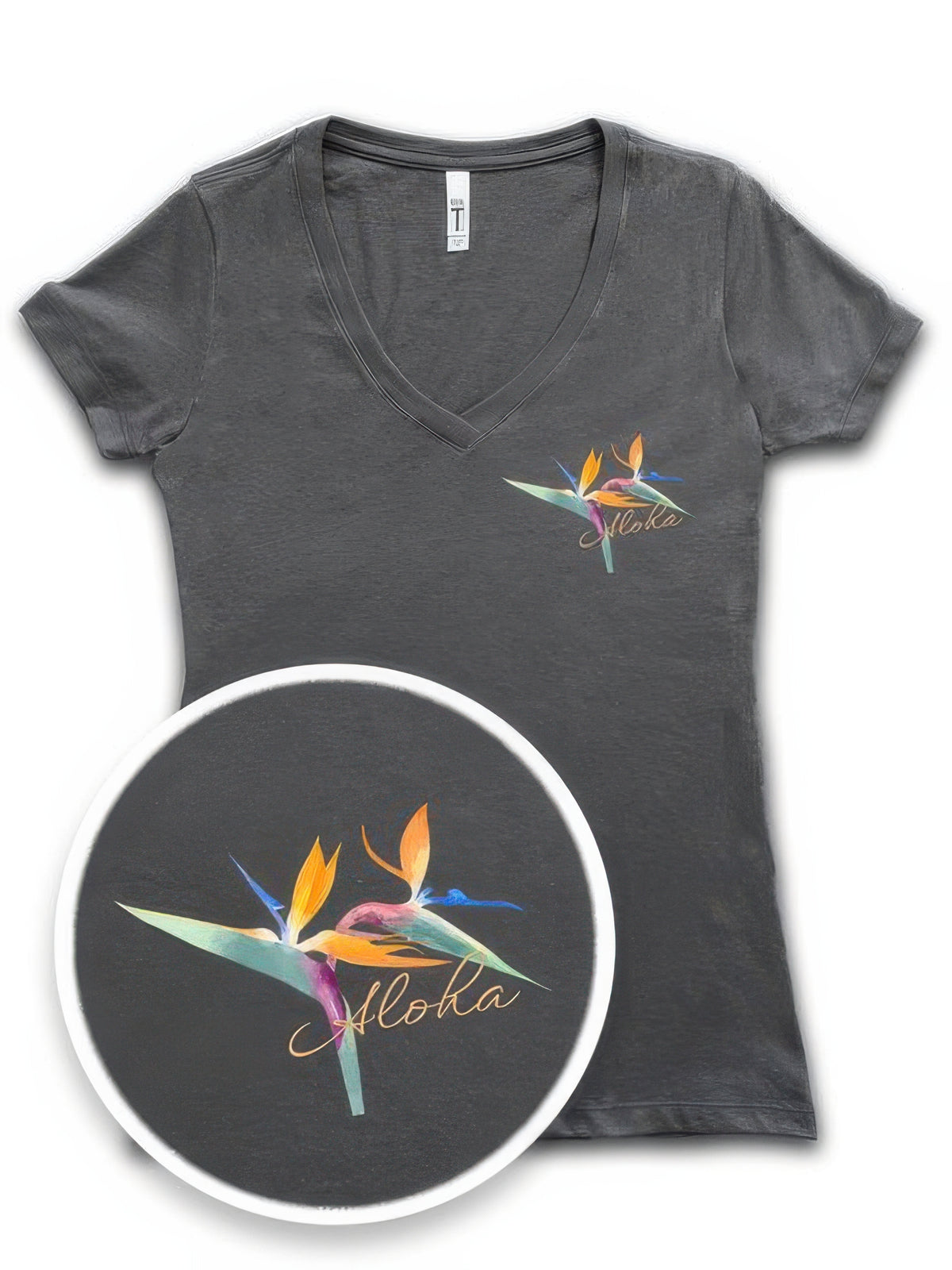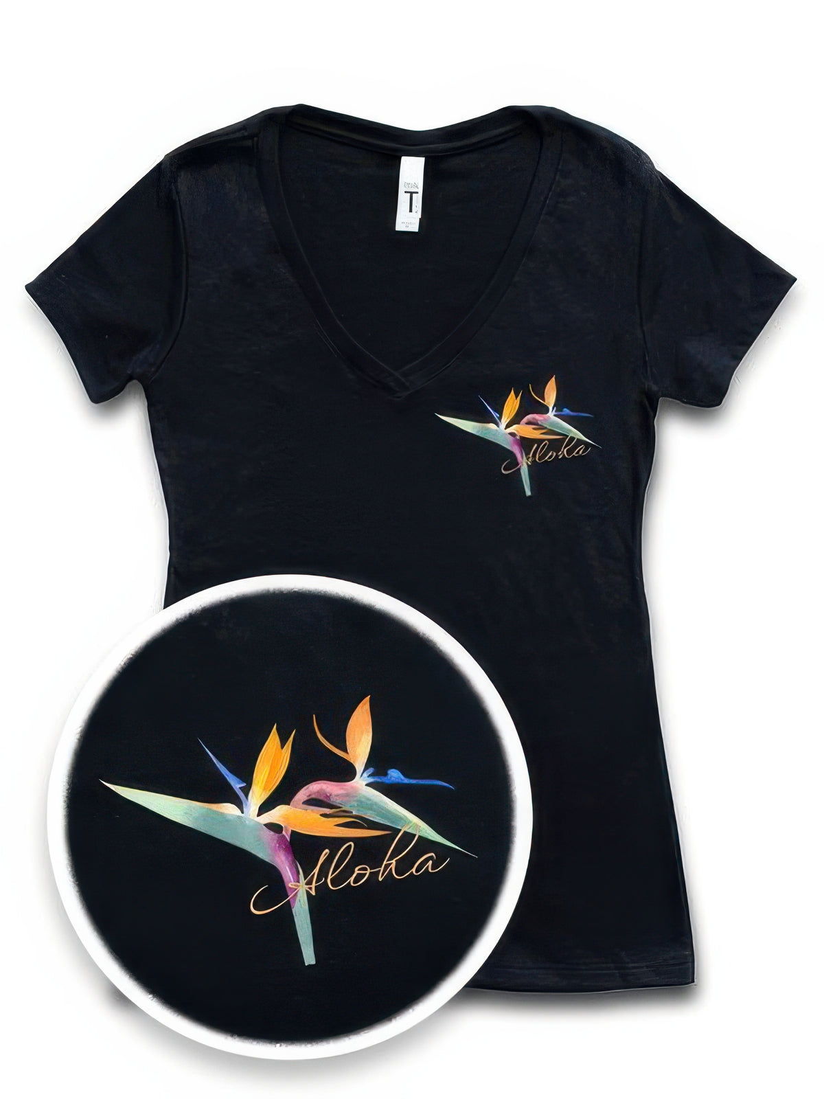 • Hand-drawn Bird of Paradise design with “Aloha” detail