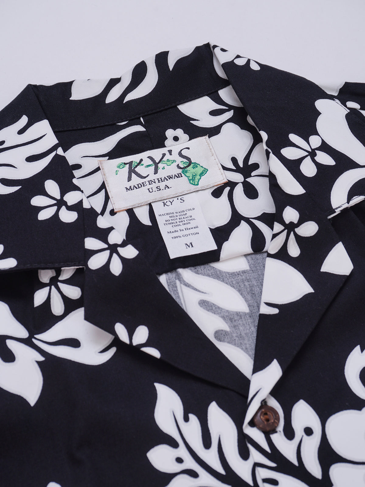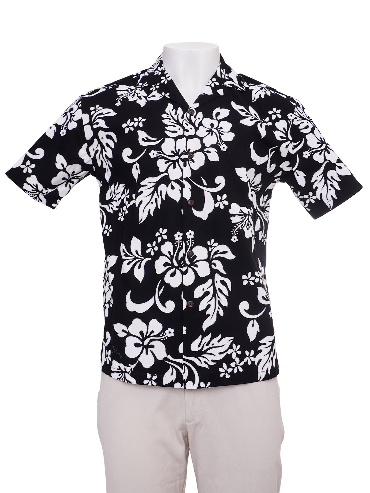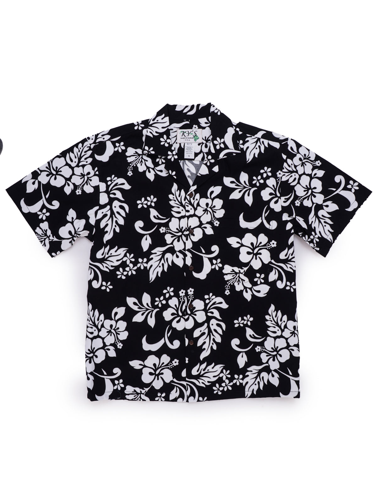 Ky's - Classic Hibiscus Black Cotton Poplin Men's Hawaiian Shirt