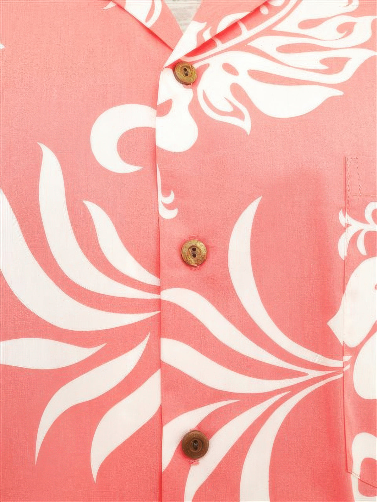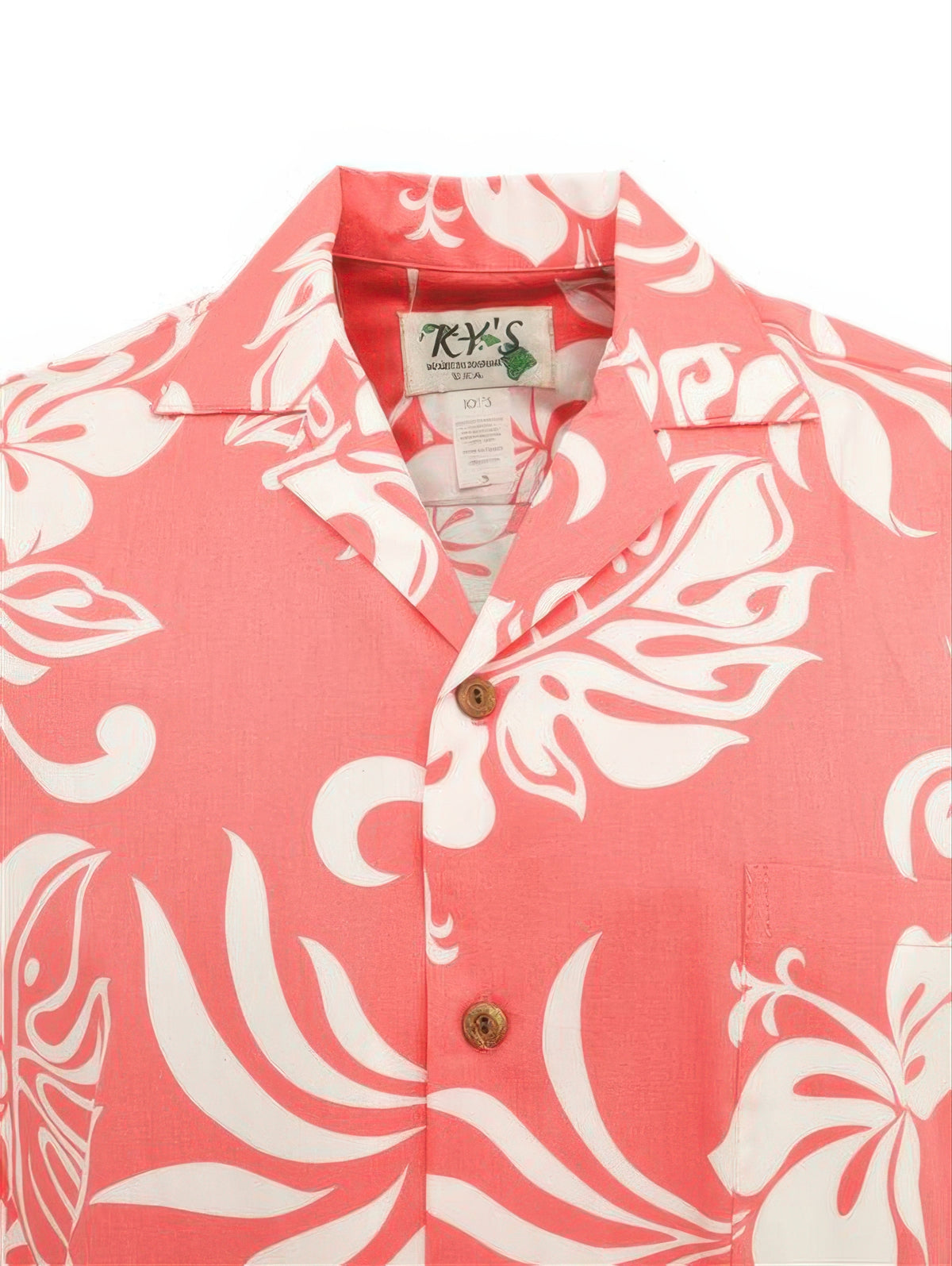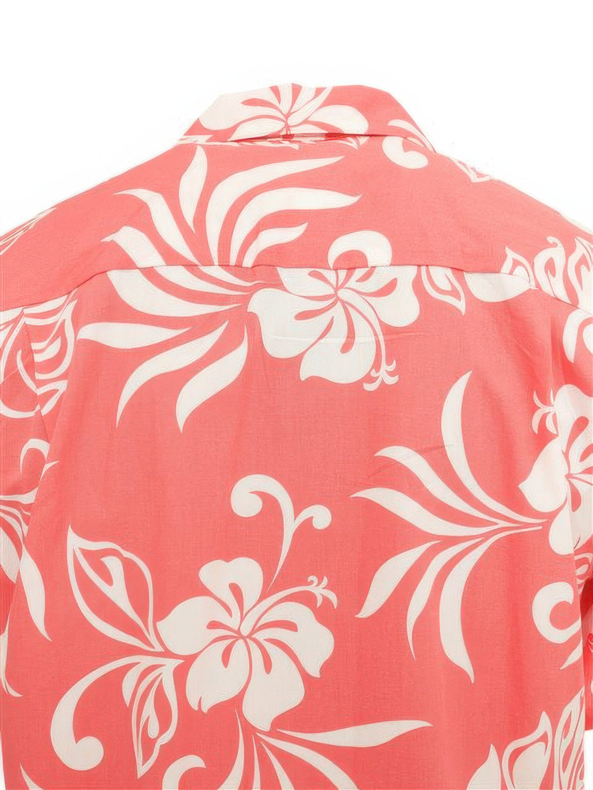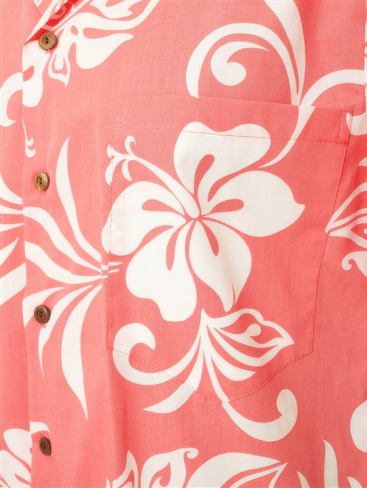 Ky's - Classic Hibiscus Coral Cotton Poplin Men's Hawaiian Shirt