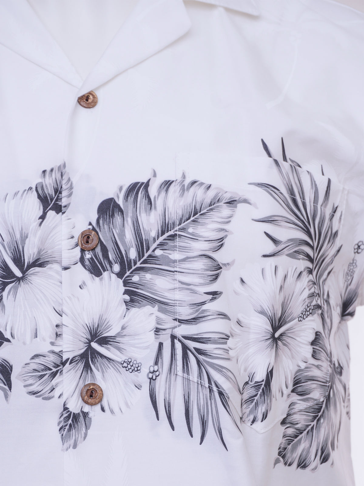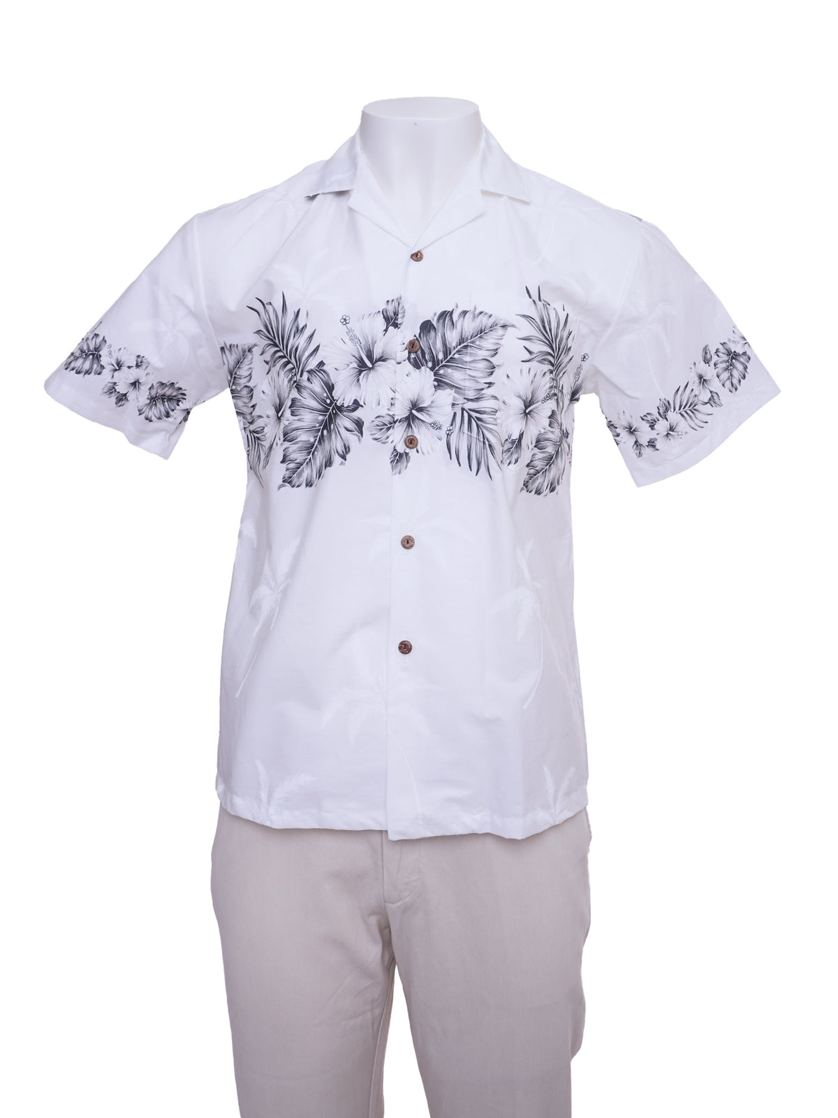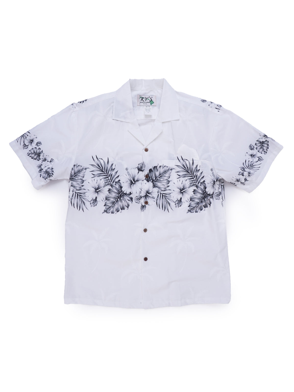 Ky's - Hibiscus Row White & Black Cotton Poplin Men's Hawaiian Shirt