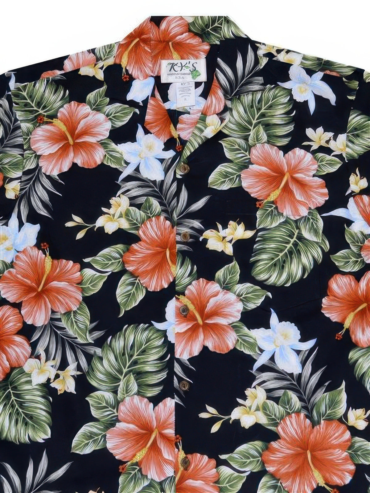 Ky's - Kahala Hibiscus Black Cotton Poplin Men's Hawaiian Shirt