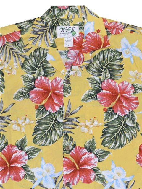 Ky's - Kahala Hibiscus Yellow Cotton Poplin Men's Hawaiian Shirt