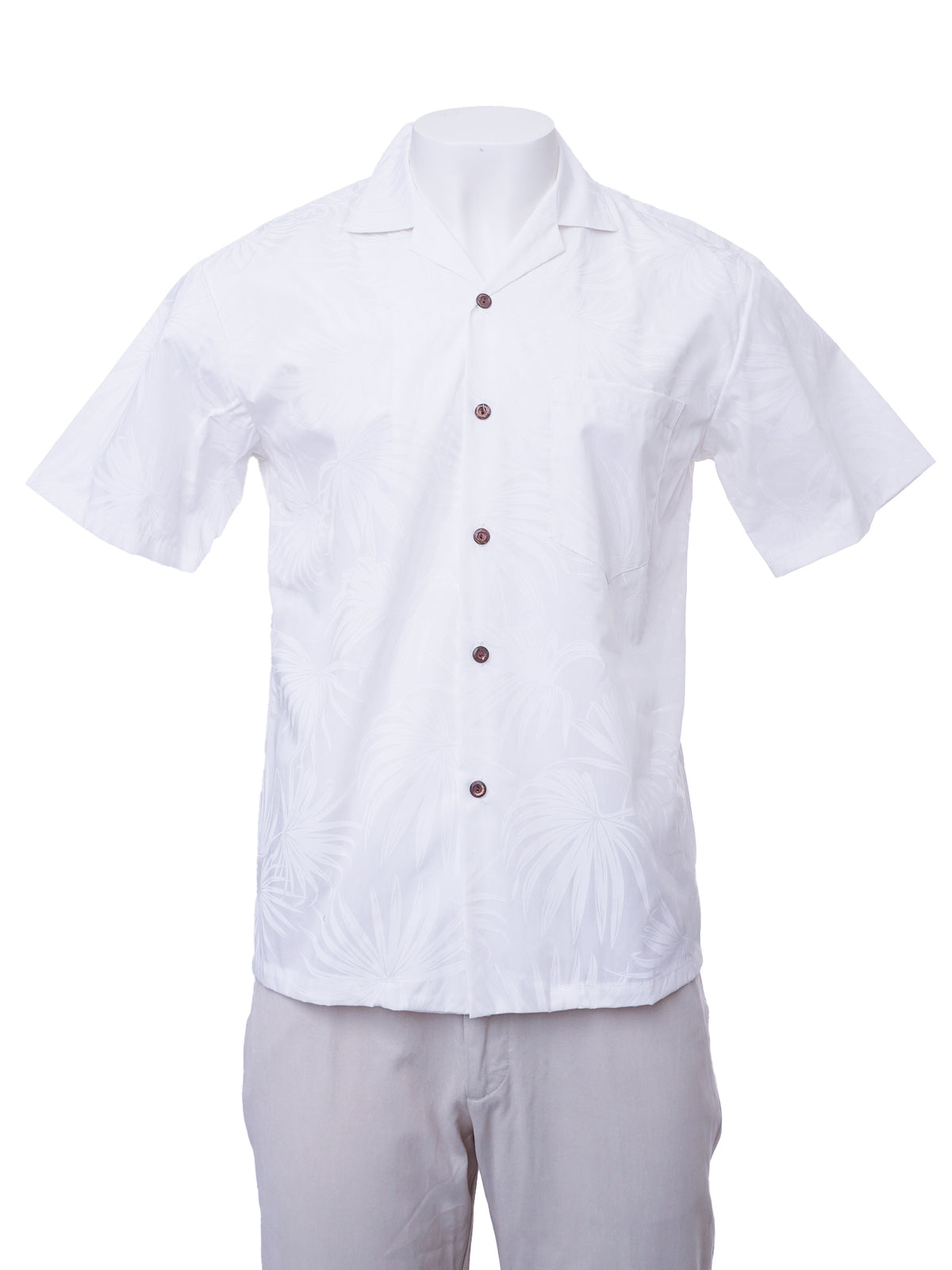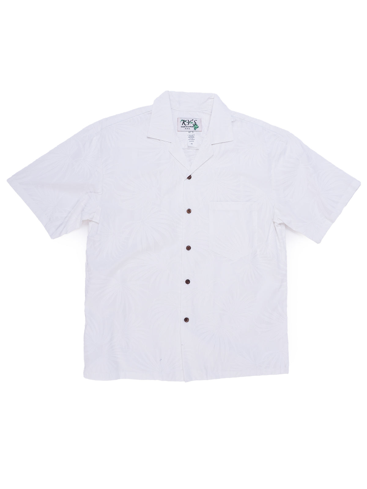 Ky's - Palm White Cotton Men's Hawaiian Shirt