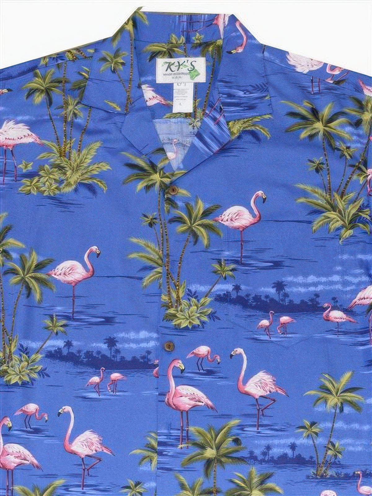 Ky's - Pink Flamingo Island Blue Cotton Poplin Men's Hawaiian Shirt