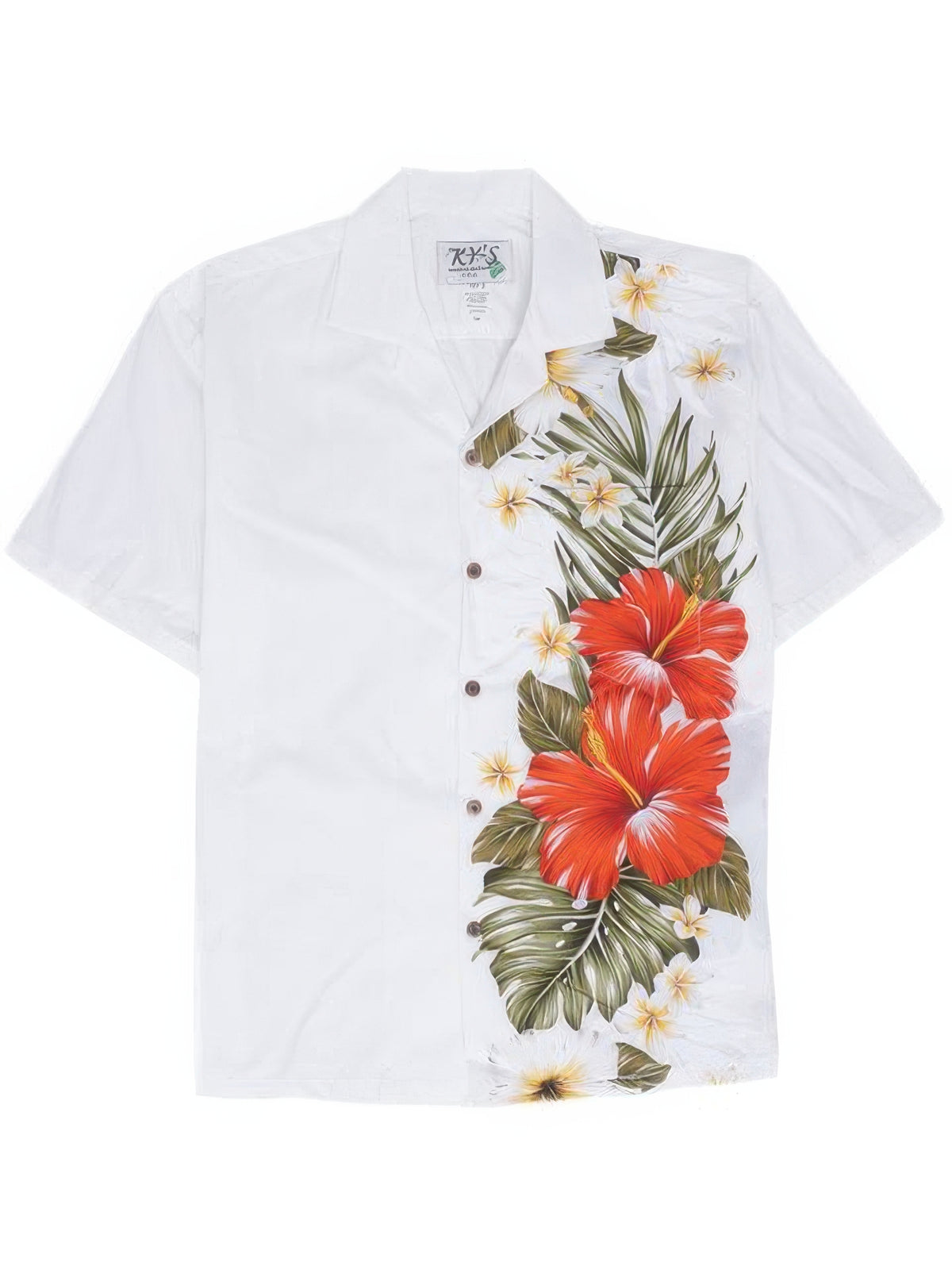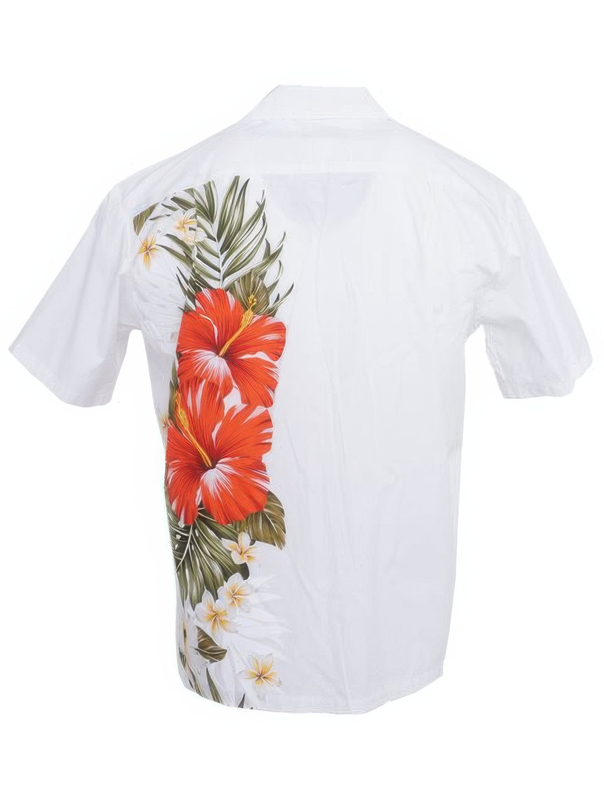 Ky's - Red Aloalo Flower White Cotton Poplin Men's Hawaiian Shirt