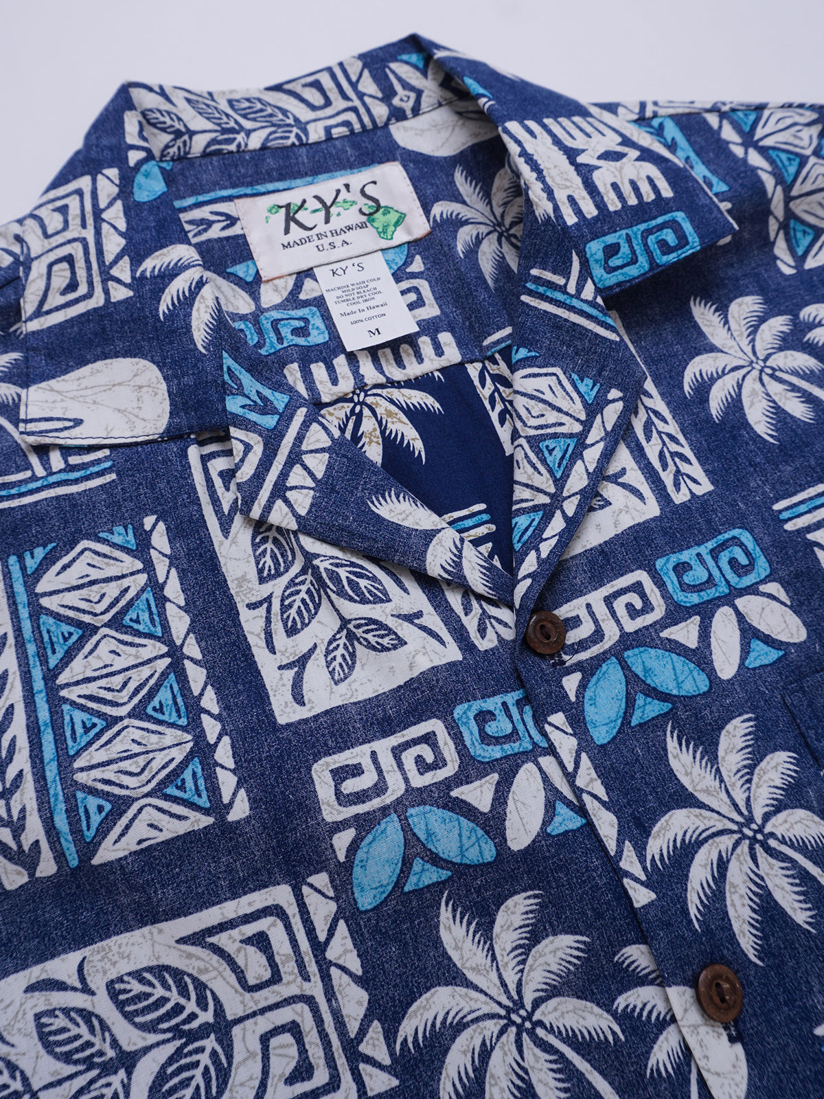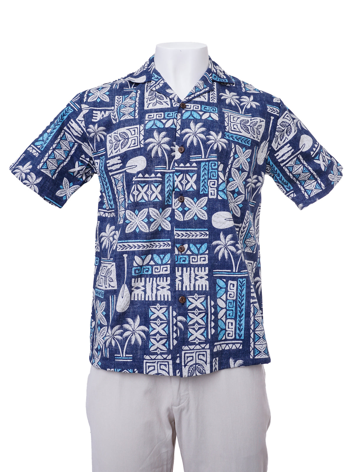 Ky's - Traditional Tapa Navy Blue Cotton Poplin Men's Hawaiian Shirt
